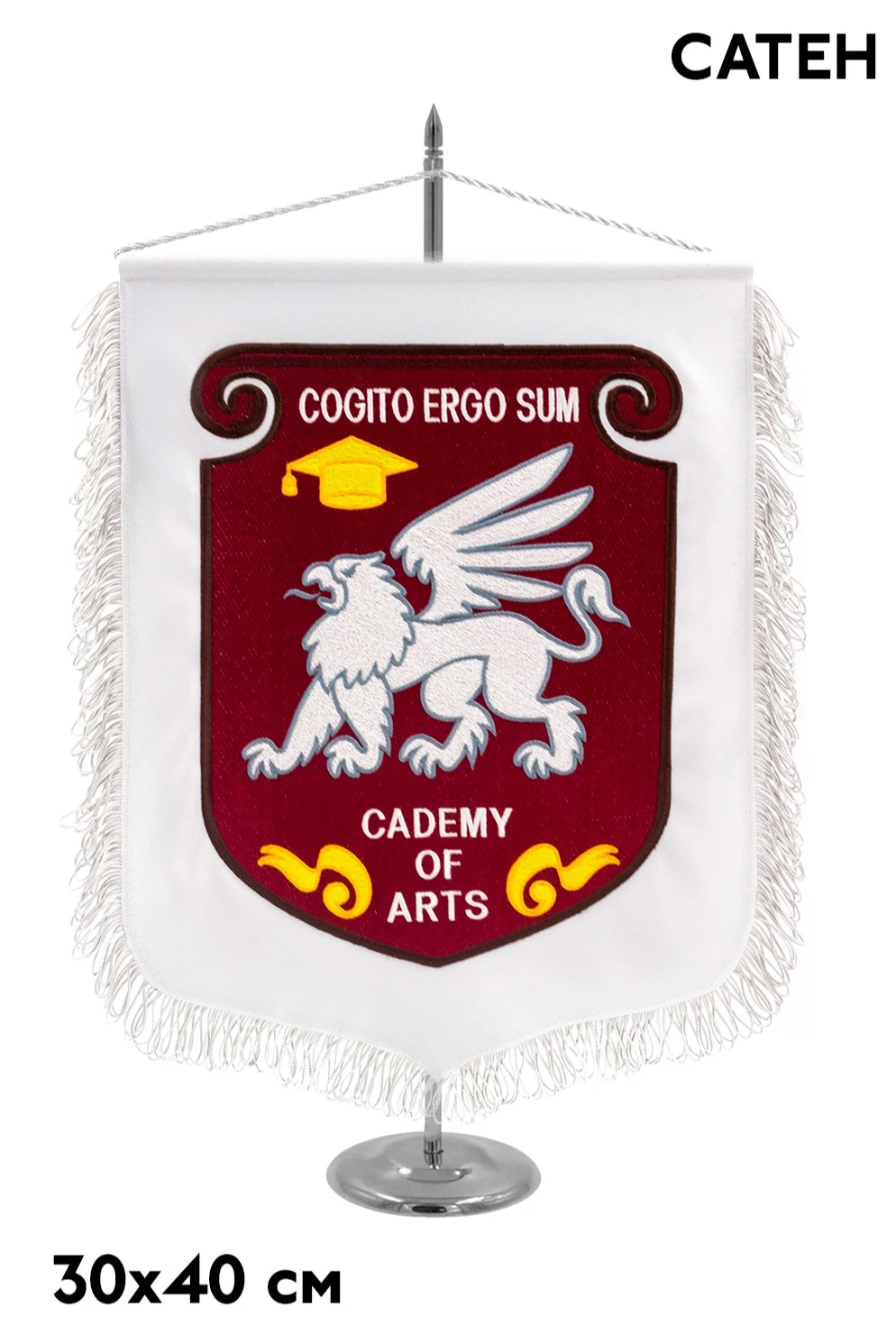 Вымпел Герб печатный с вышивкой из сатена с бахромой, 30х40 см "Cademy of arts"