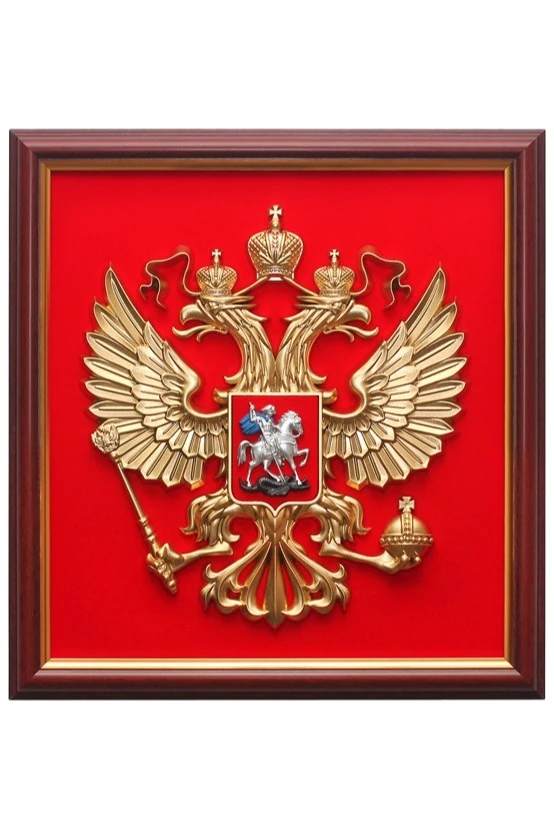 Гербовое панно - это небольшой гербовый орёл, обрамлённый в багет. Панно имеет прямоугольную форму, а не форму французского щита (как герб). Тем не менее популярность такого атрибута достаточно высока. Гербовое панно - отличный подарок и предмет официального интерьера.