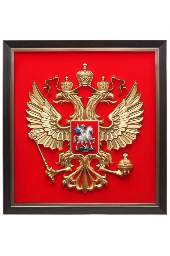 Гербовое панно - это небольшой гербовый орёл, обрамлённый в багет. Панно имеет прямоугольную форму, а не форму французского щита (как герб). Тем не менее популярность такого атрибута достаточно высока. Гербовое панно - отличный подарок и предмет официального интерьера.