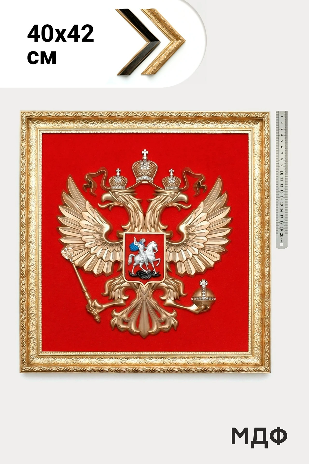 Гербовое панно РФ 40х42 см, рельефное, кристаллы Сваровски, с рамкой