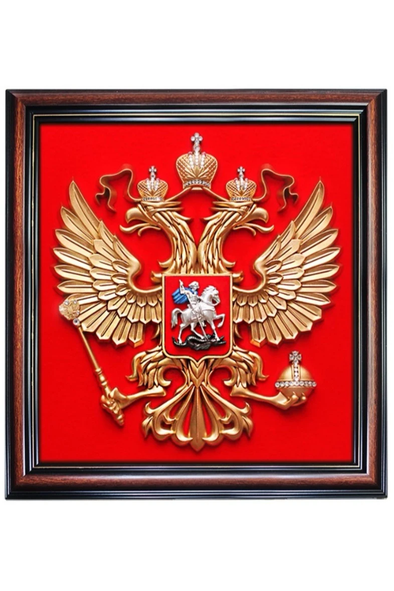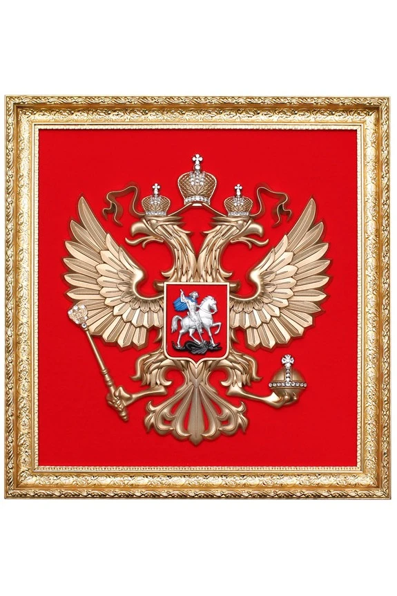 Гербовое панно - это небольшой гербовый орёл, обрамлённый в багет. Панно имеет прямоугольную форму, а не форму французского щита (как герб). Тем не менее популярность такого атрибута достаточно высока. Гербовое панно - отличный подарок и предмет официального интерьера.