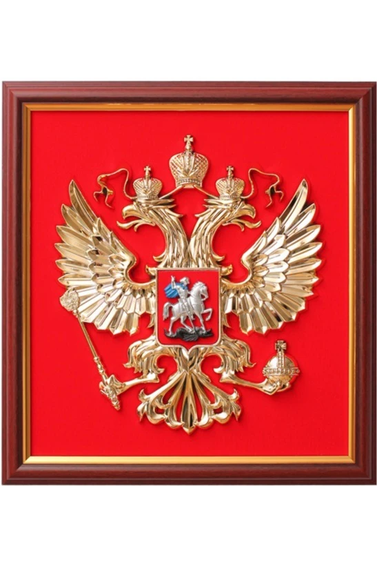 Гербовое панно - это небольшой гербовый орёл, обрамлённый в багет. Панно имеет прямоугольную форму, а не форму французского щита (как герб). Тем не менее популярность такого атрибута достаточно высока. Гербовое панно - отличный подарок и предмет официального интерьера.