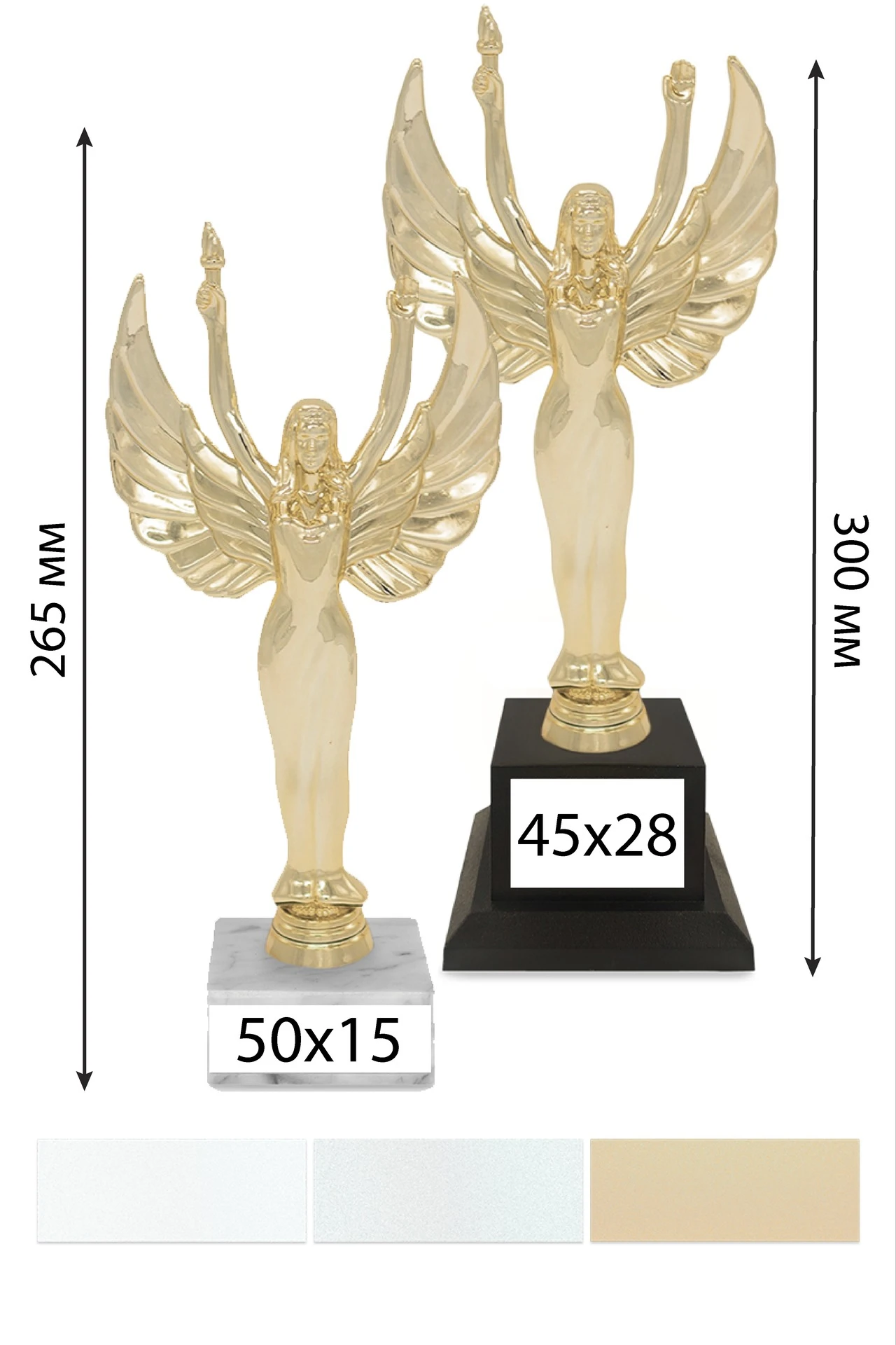 Описание: Товар представляет собой фигуру, установленную на основание. Макет наносится на табличку, закрепленную на основание фигуры. Нанесение на табличку стандартного размера уже входит в стоимость, указанную на сайте.