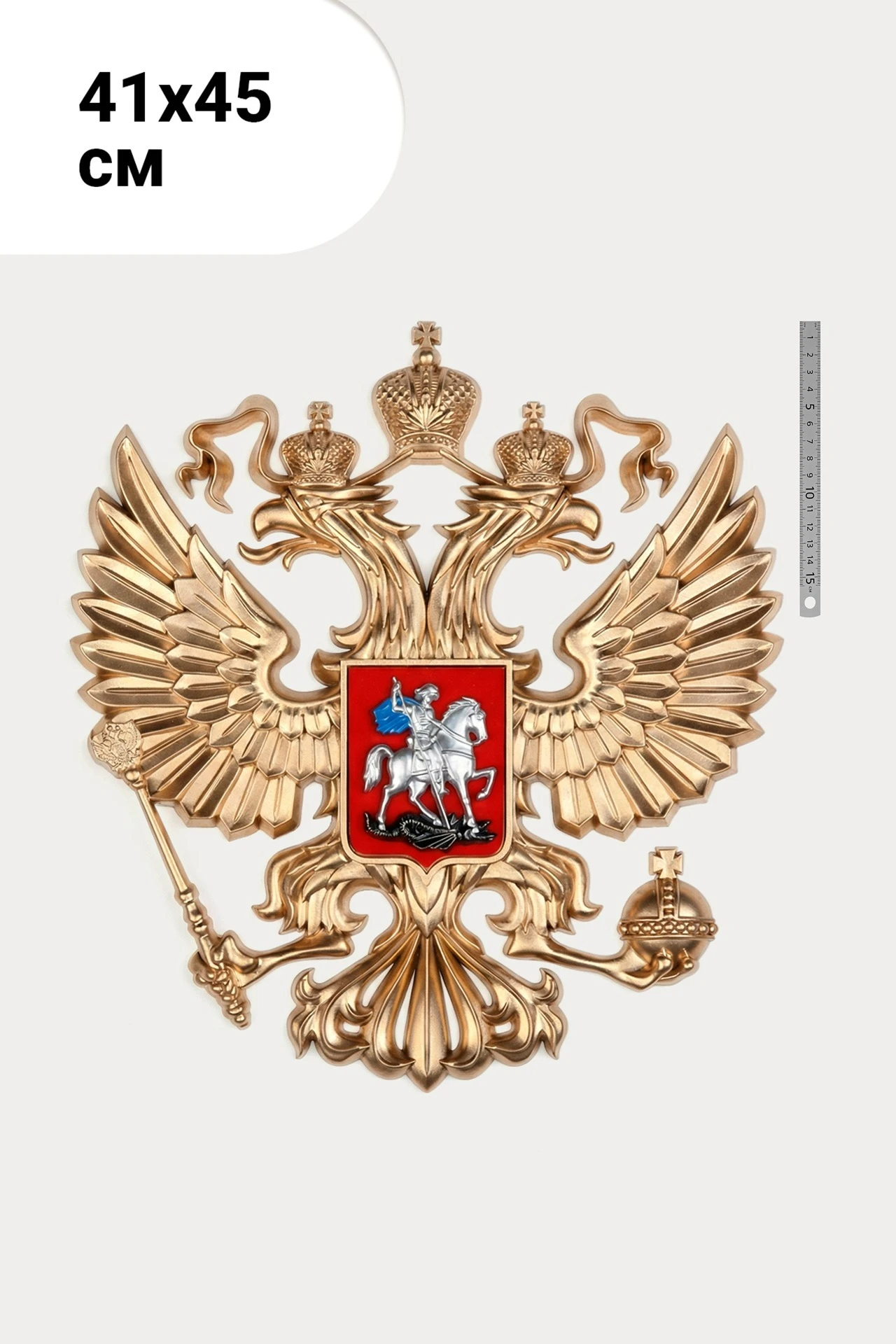 Гербовые орлы России без геральдического щита средних размеров часто используются в качестве элементов оформления интерьеров государственных организаций и учреждений. Гербовый орёл из пластика легко фиксируется на поверхностях с помощью саморезов или двустороннего скотча.