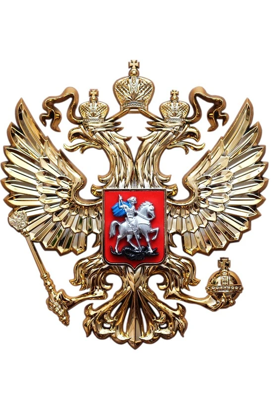Гербовые орлы России без геральдического щита средних размеров часто используются в качестве элементов оформления интерьеров государственных организаций и учреждений. Гербовый орёл из пластика легко фиксируется на поверхностях с помощью саморезов или двустороннего скотча.