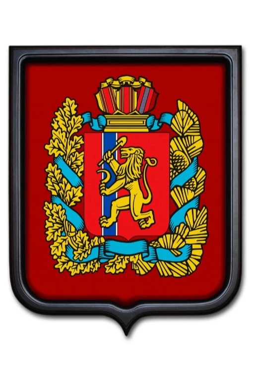 Герб Красноярского края содержит золотое изображение стоящего в вертикальной позе льва. Над его головой расположился пьедестал, на котором присутствуют три орденских ленты. Передние лапы животного держат лопату и серп. С левой стороны изображение льва обрамляют дубовые листья, а с правой – кедровые ветки. Между собой они соединены голубой ленточкой.