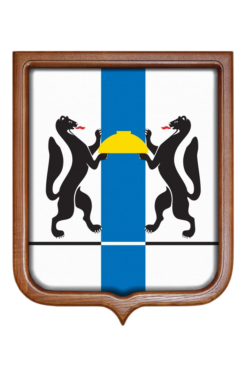 Форма, размер: Герб имеет форму французского щита размером 53х61 см. На оборотной стороне имеется крепление "крокодил" для подвешивания герба на стену.