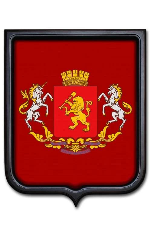 Форма, размер: Герб имеет форму французского щита размером 35х43 см. На оборотной стороне имеется крепление "крокодил" для подвешивания герба на стену.