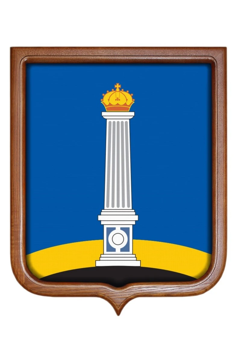 Форма, размер: Герб имеет форму французского щита размером 53х61 см. На оборотной стороне имеется крепление "крокодил" для подвешивания герба на стену.