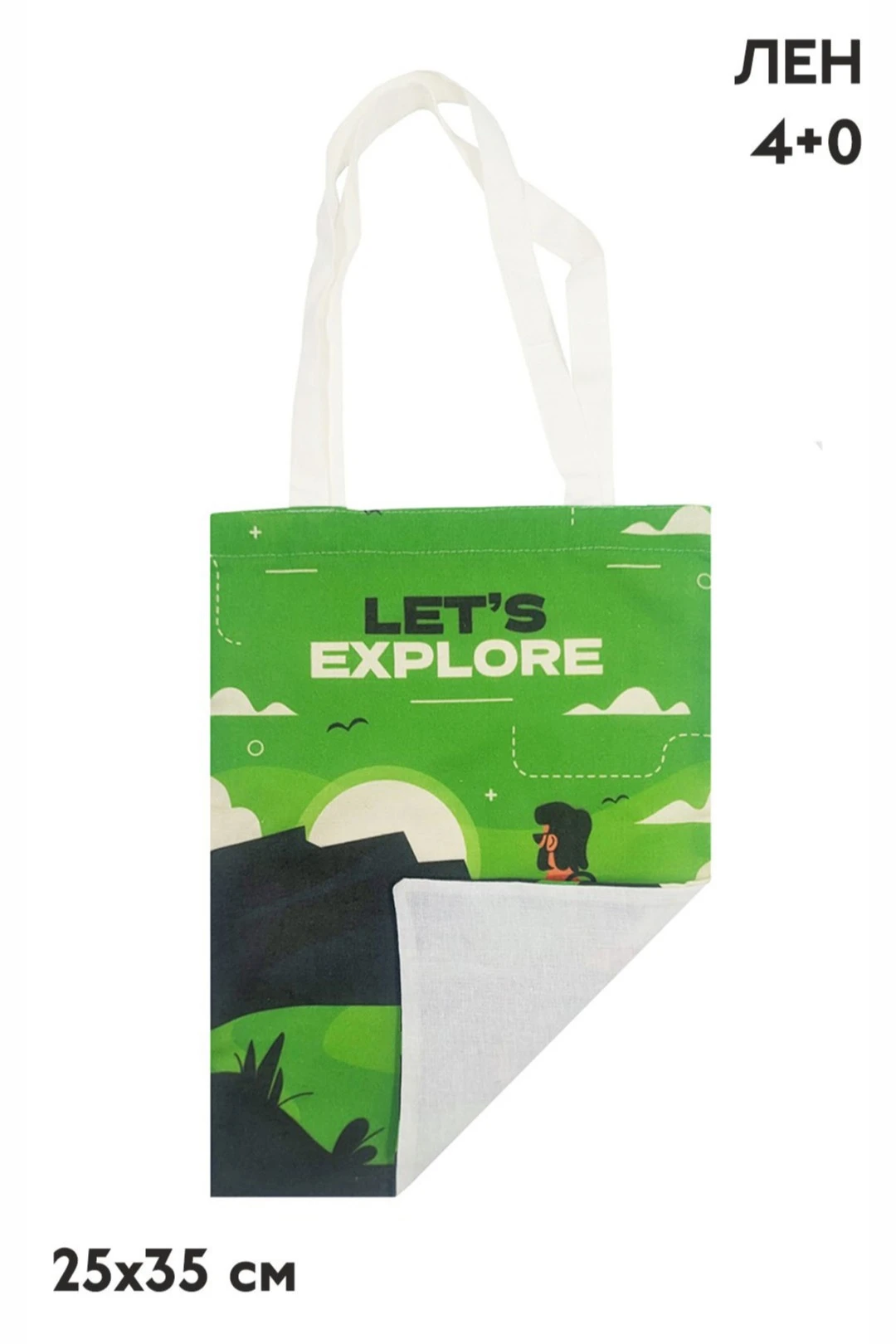 Печать с двух сторон: полноцветная печать осуществляется на хб материале с двух сторон по всей поверхности сумки, ручки сумки запечатываются фоновой заливкой без элементов дизайна.
