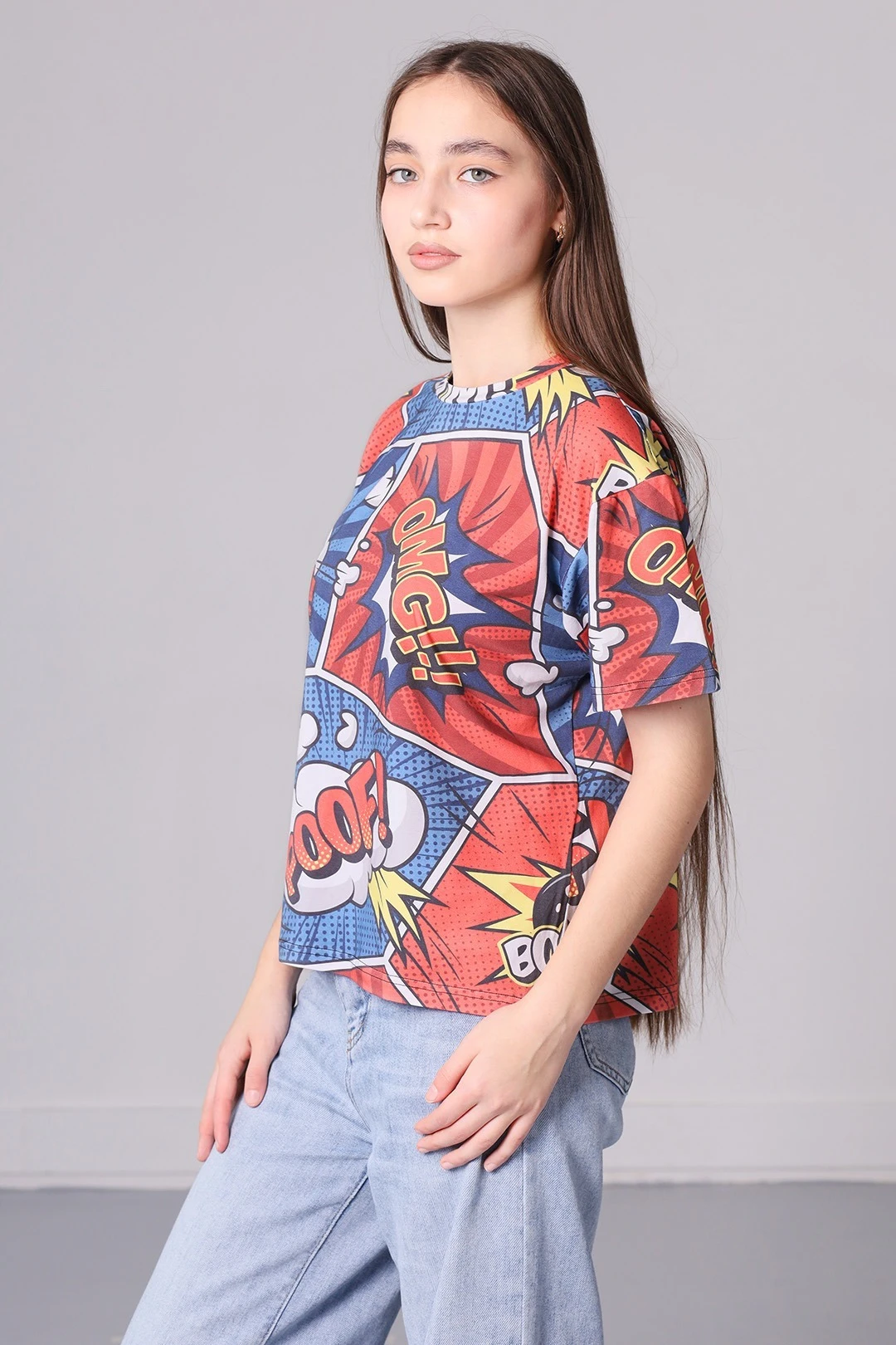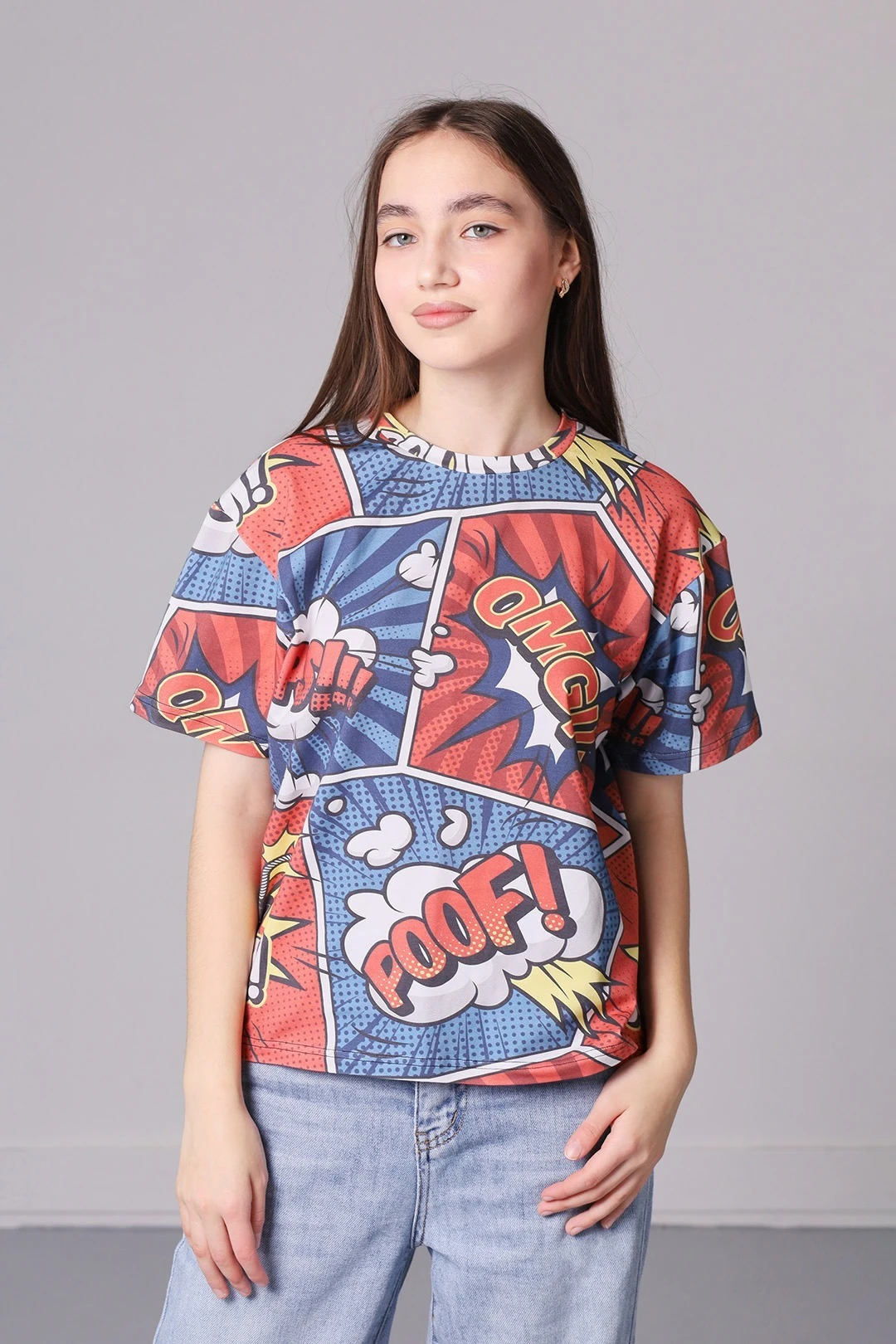 Модель. Прямой силуэт. Рукав короткий. Футболка имеет боковые швы без разрезов по низу изделия. Обработка горловины из основной ткани. Форма ворота О-образная.