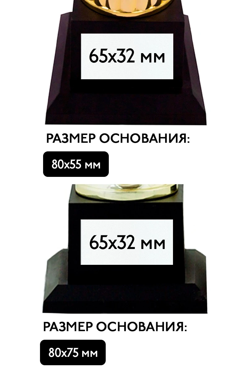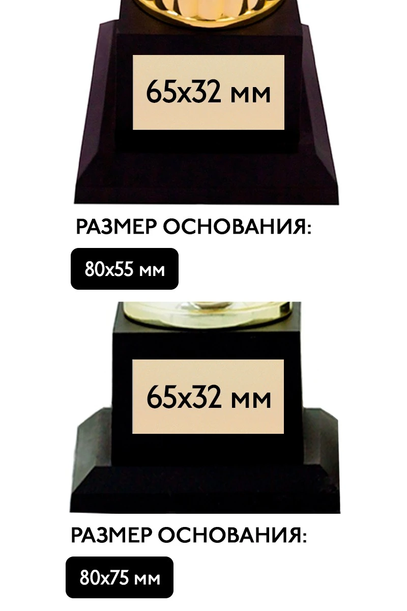 Шильд - информационная табличка, на которой размещены надписи и обозначения. Она закрепляется к основанию наградного кубка или статуэтки. Шильд прямоугольной формы с креплением на двусторонний скотч. Двусторонний скотч входит в стоимость товара. Размер шильда зависит от размера основания и является стандартным.