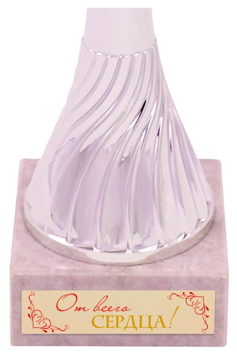 Шильд - информационная табличка, на которой размещены надписи и обозначения. Она закрепляется к основанию наградного кубка или статуэтки. Шильд прямоугольной формы с креплением на двусторонний скотч. Двусторонний скотч входит в стоимость товара. Размер шильда зависит от размера основания и является стандартным.