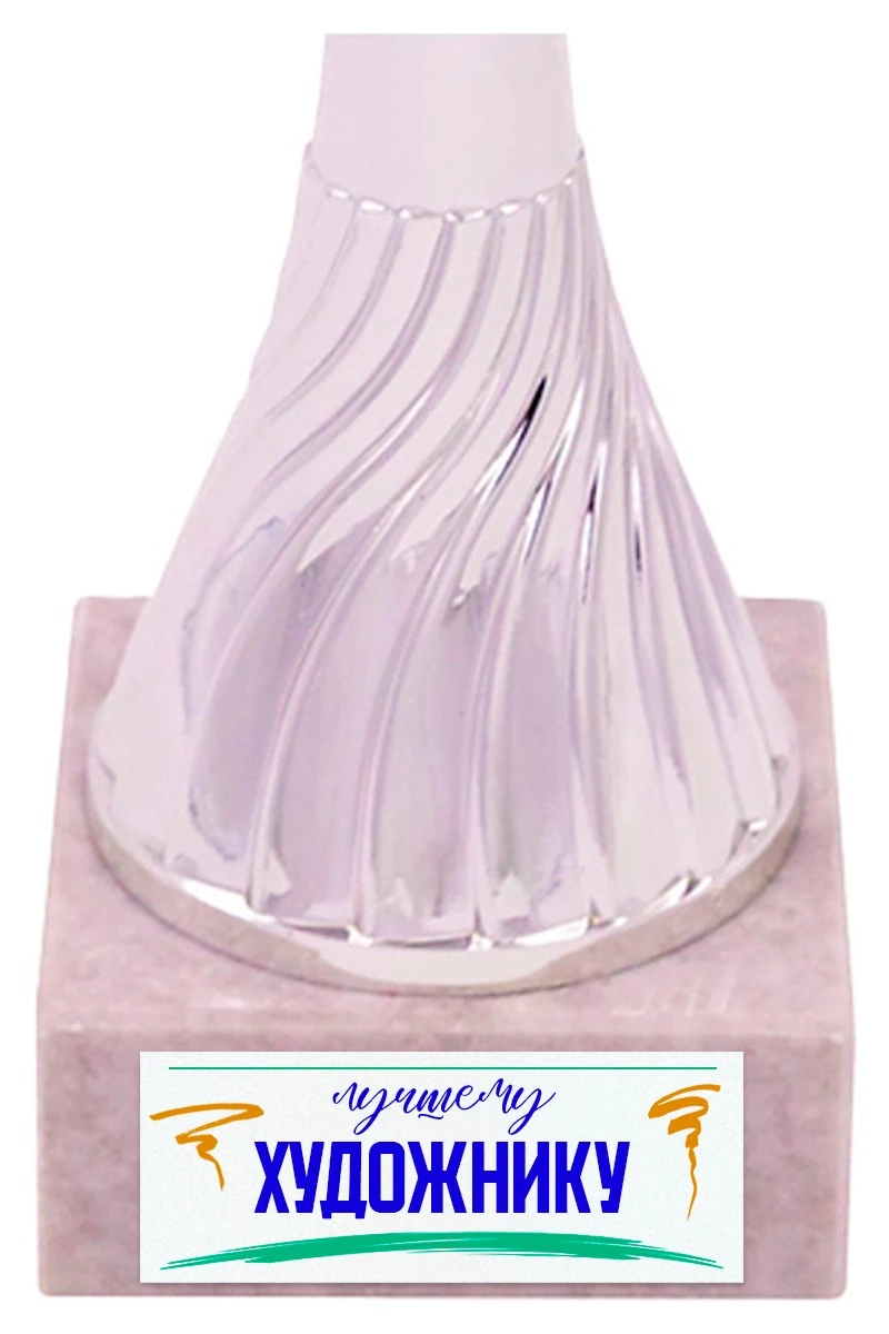 Шильд - информационная табличка, на которой размещены надписи и обозначения. Она закрепляется к основанию наградного кубка или статуэтки. Шильд прямоугольной формы с креплением на двусторонний скотч. Двусторонний скотч входит в стоимость товара. Размер шильда зависит от размера основания и является стандартным.