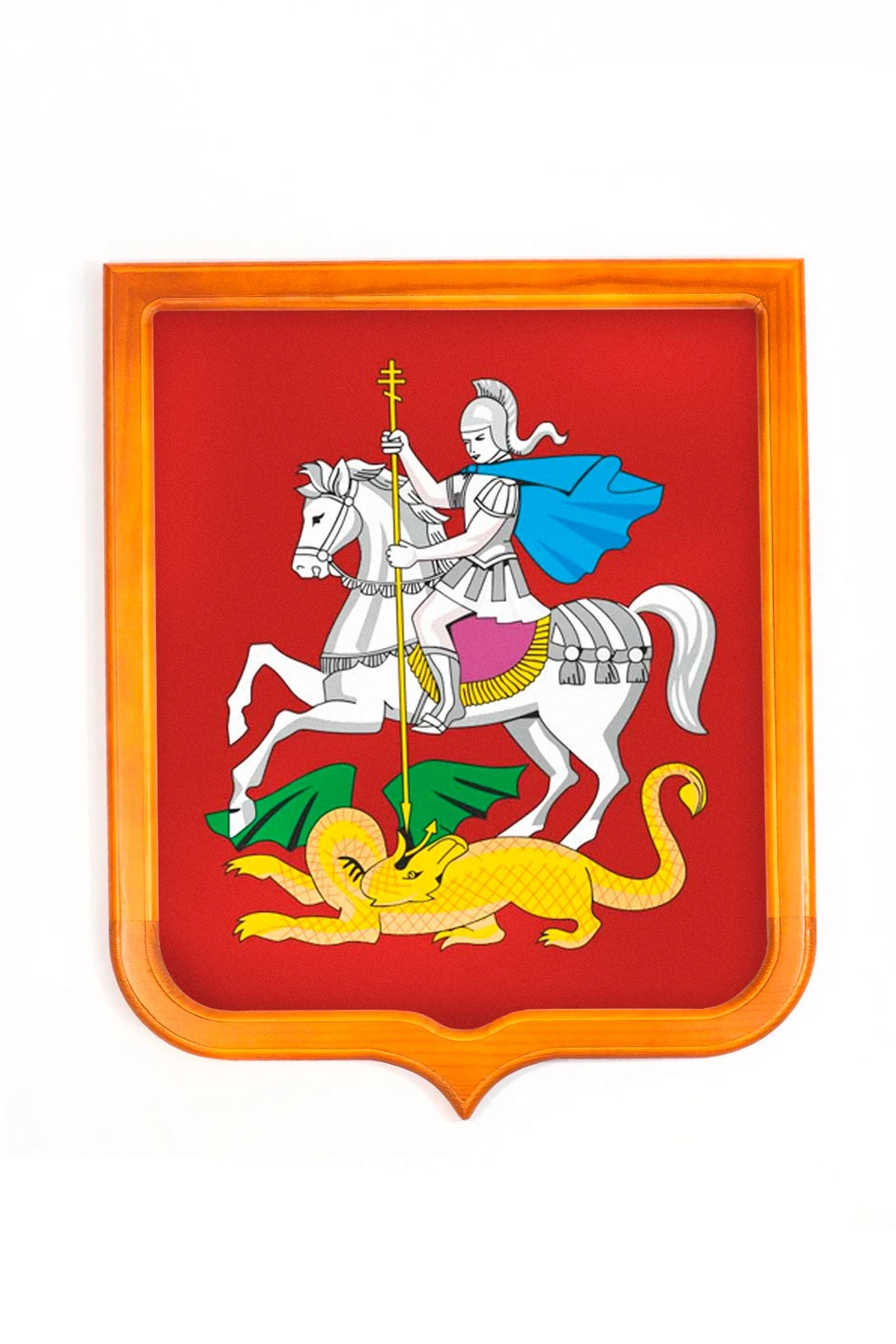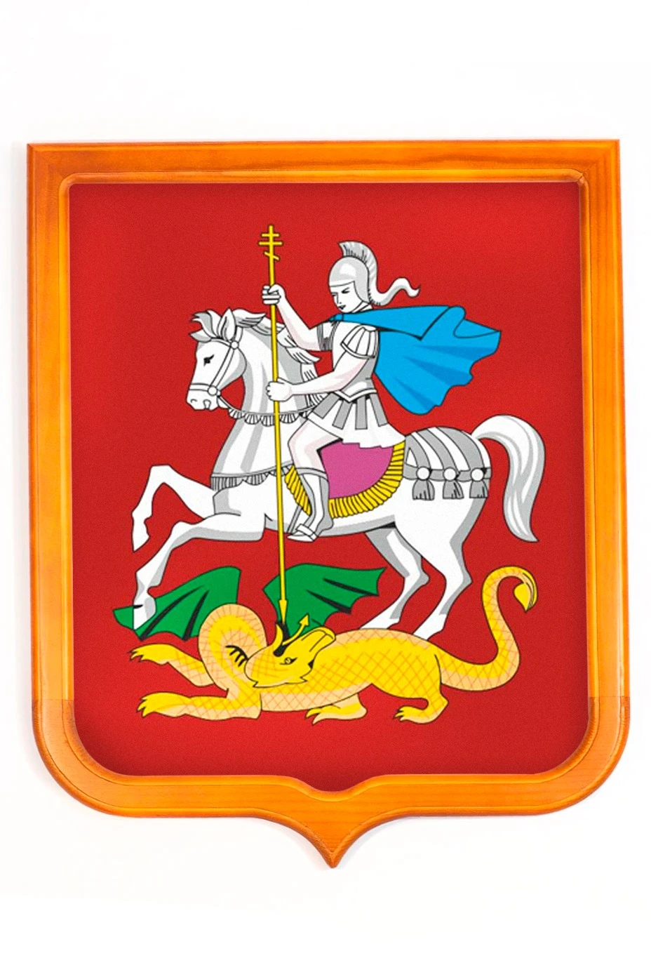 Форма: Герб имеет форму французского щита размером 35х43 см. На оборотной стороне имеется крепление "крокодил" для подвешивания герба на стену.