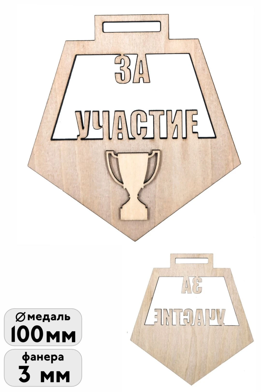 Медаль из фанеры Многоугольник МФ1001 100 мм двухслойная с гравировкой