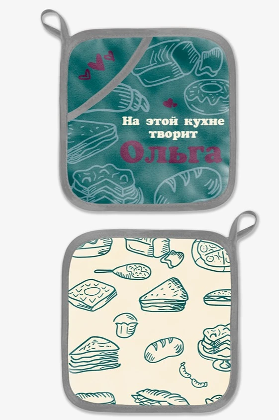 Особенности нанесения: Полноцветное нанесение осуществляется методом прямой печати. Изображение размещается в соответствии с лекалом. Нанесение на прихватку входит в стоимость прихватки.
