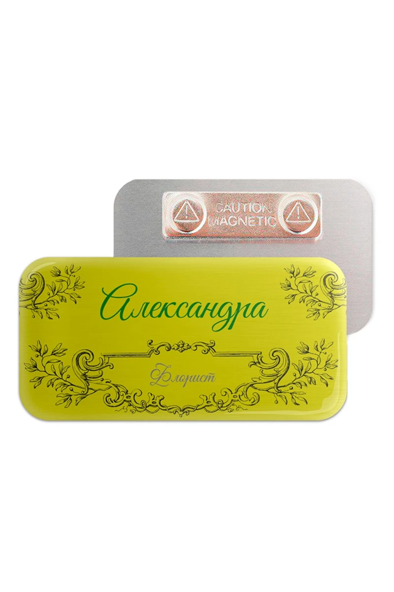 Бейдж с именем и должностью сотрудника компании - важный инструмент формирования имиджа вашей организации. Бейдж на металлической пластине, который предлагает компания "Инари", крепится посредством магнитного держателя. Нанесение информации мы выполним методом сублимации.