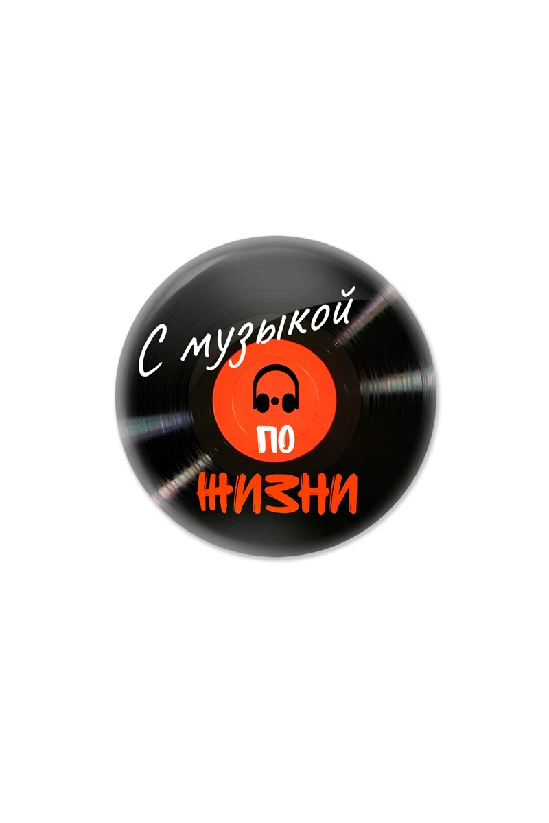 Наклейка заливная 2х2 см круг, с нанесением "With music through life"