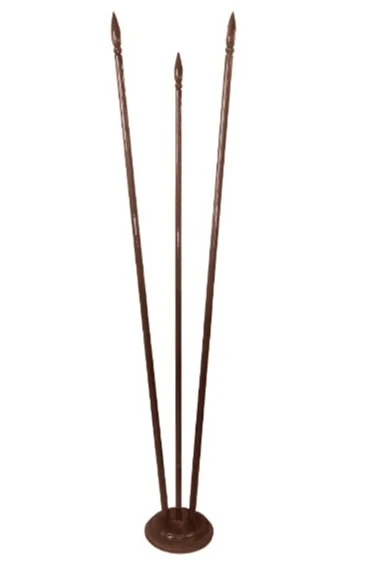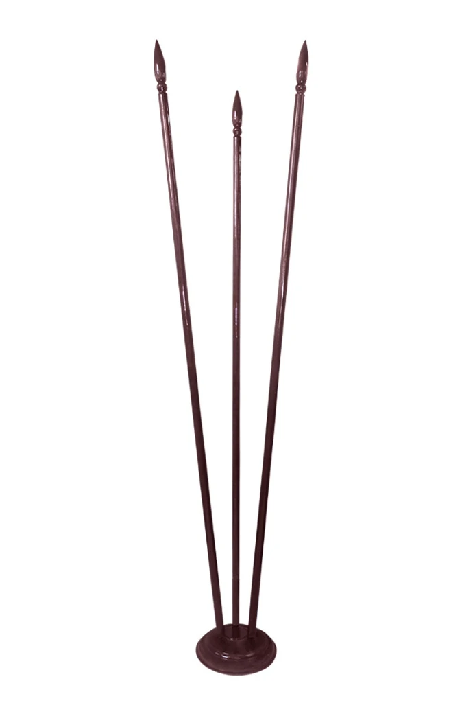 Древко. Длина древка составляет 2,5 м. Диаметр древка - 3,4 см. Нижний край древка имеет проточку - часть древка длиной 5 см меньшая по диаметру (3 см) без лакокрасочного покрытия, для установки древка в основание Блин. На верхнем срезе древка установлена футорка с резьбой М6 для ввинчивания навершия. Древки поставляются цельными. Вес древка 2,5 м - 1,10 кг.