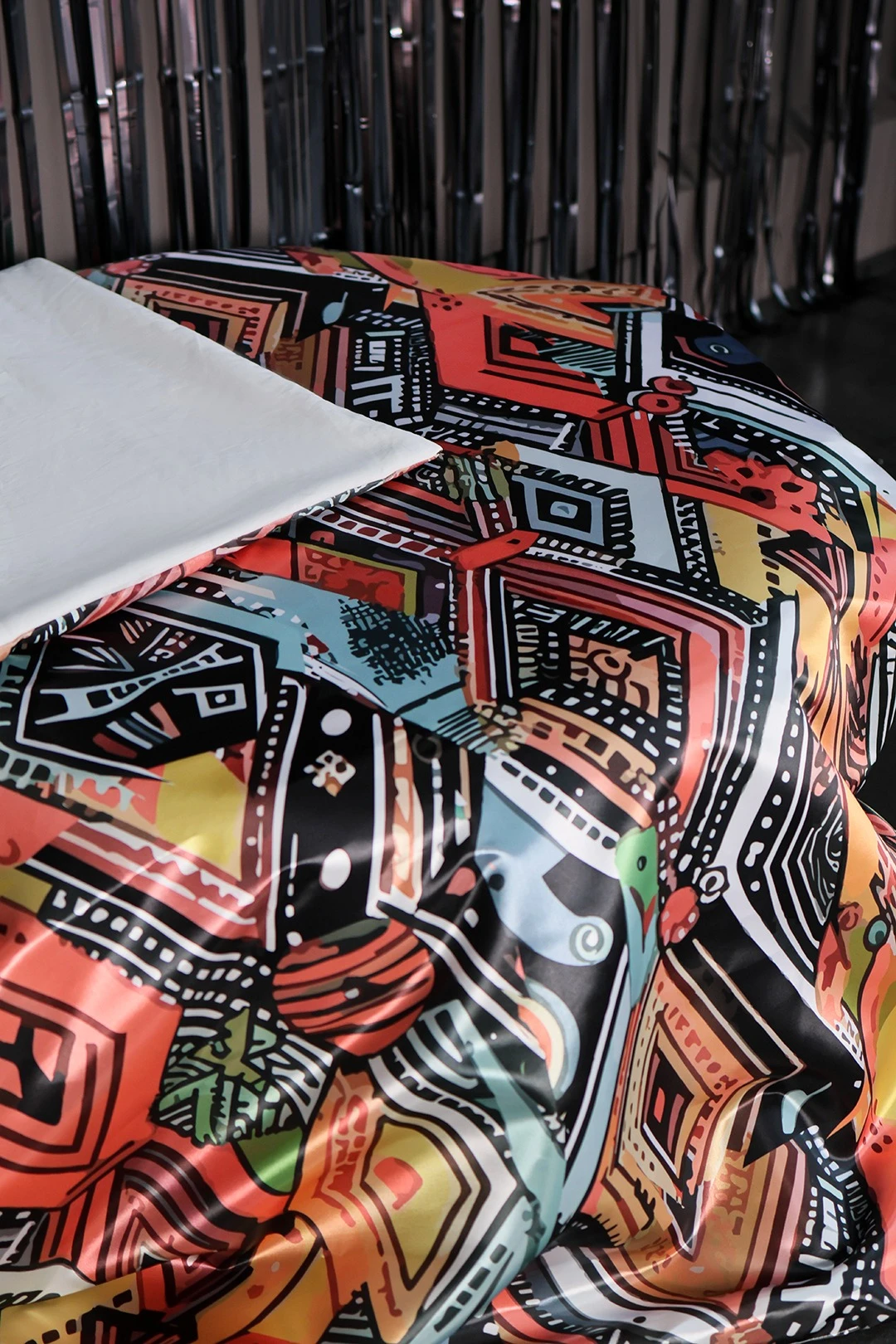 Модель. Покрывало изготовлено из двух слоев ткани. Лицевая сторона из атласа или габардина с печатью, оборот из бязи без печати. Наполнителем служит синтепон 150 гр.