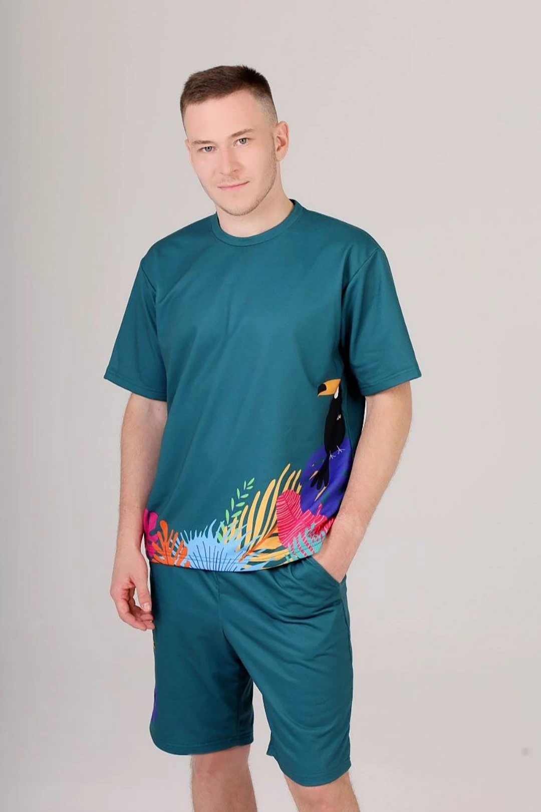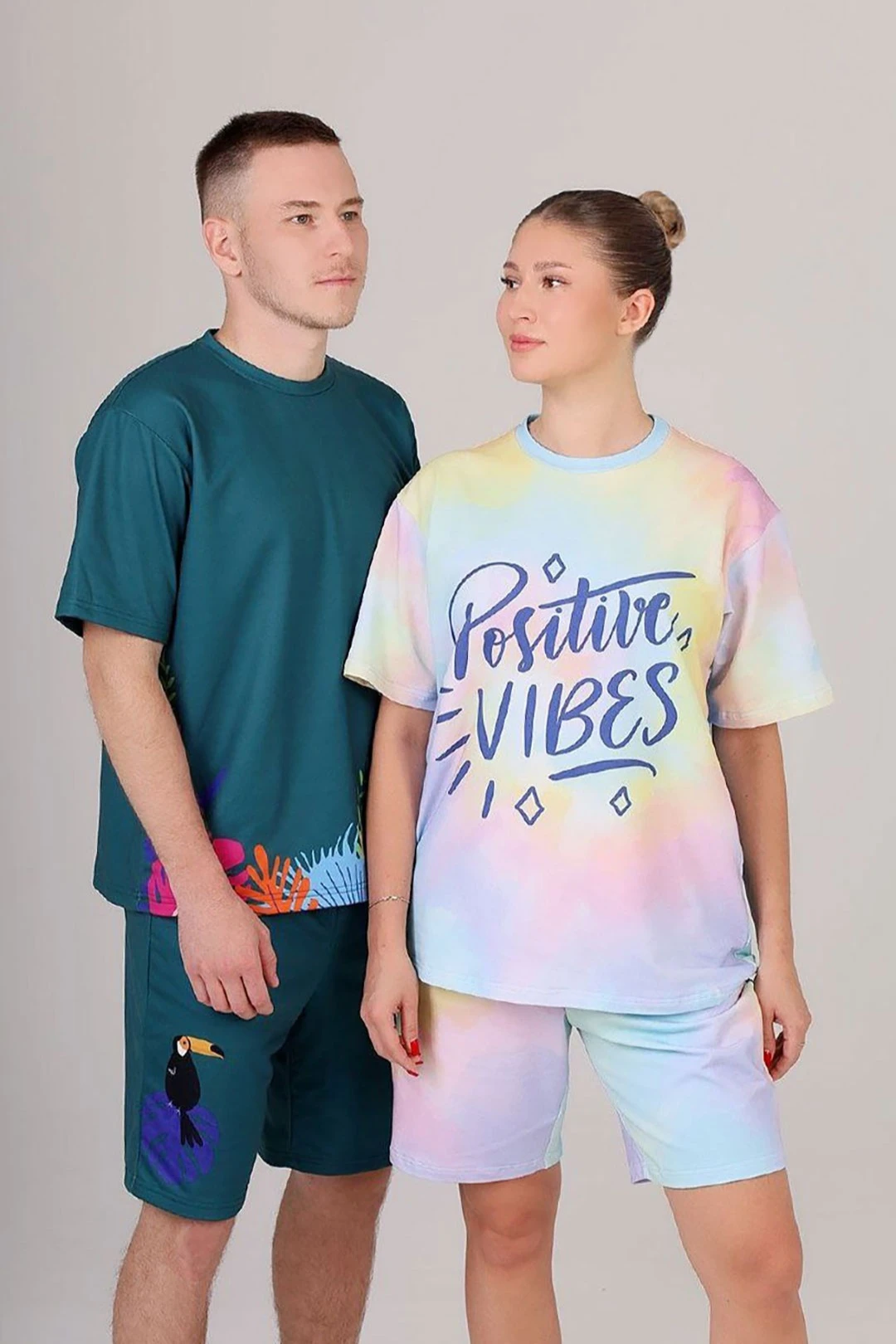 Футболка Теренс оверсайз унисекс из кулирки хб с полной запечаткой "Tropical minimalism"