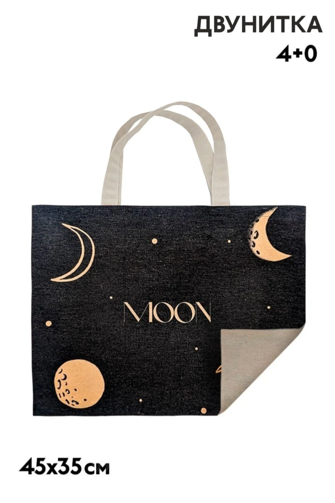 Прямая печать. Полноцветная печать осуществляется с одной стороны по всей поверхности сумки, ручки сумки запечатываются фоновой заливкой без элементов дизайна. Изображение располагается в соответствии с лекалом. Нанесение входит в стоимость сумки.