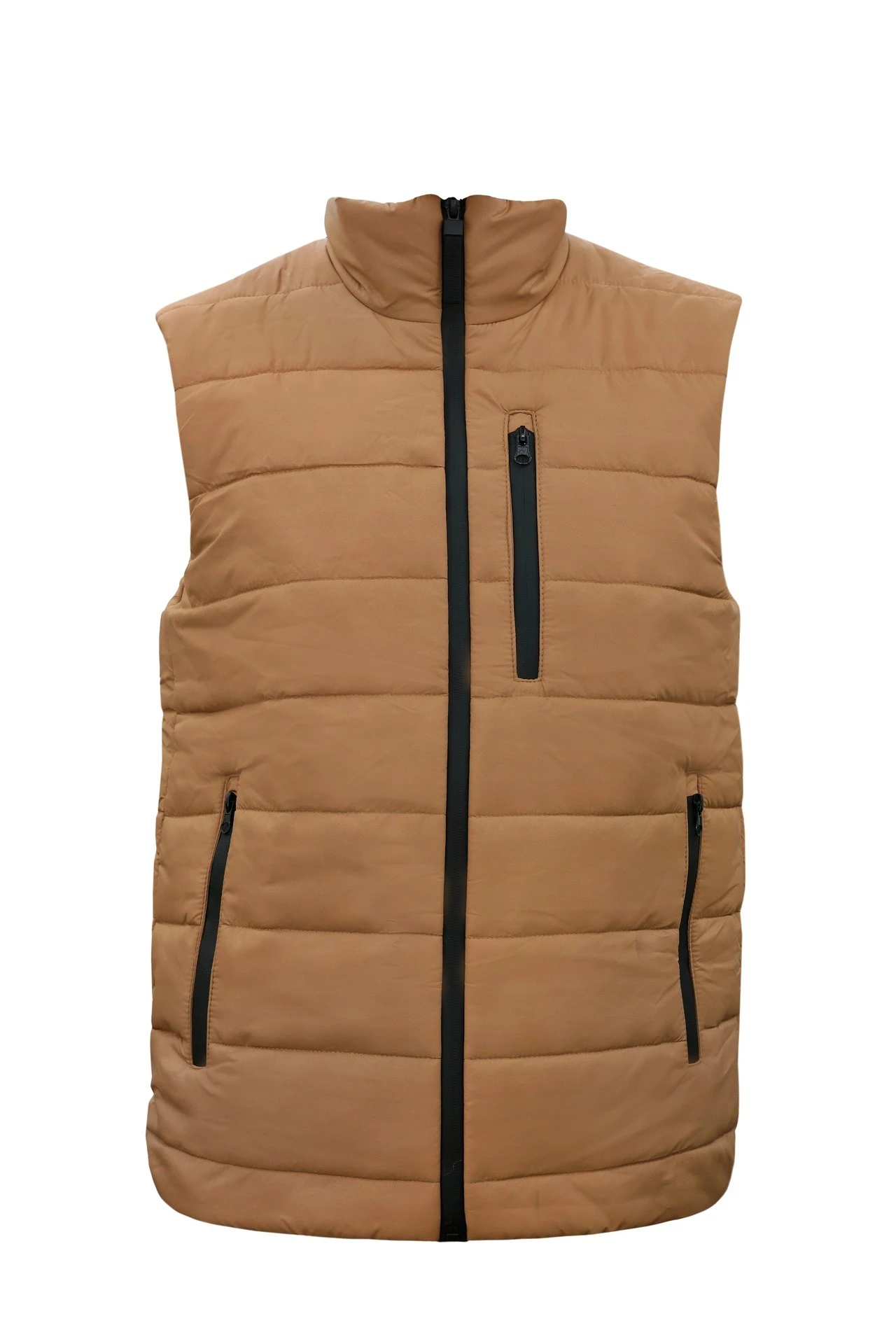Модель: Жилет Эмбер прямого силуэта утепленный синтепоном 200 гр., с подкладом из дешайна. Стежка по спинке и полочке, спинка удлиненная. Имеет три кармана в рамку на молнии. Воротник стойка. Застегивается на реверсивную молнию черного цвета. Детали верха и подклада с полной запечаткой. Запечатка материала осуществляется в стандартные цвета.