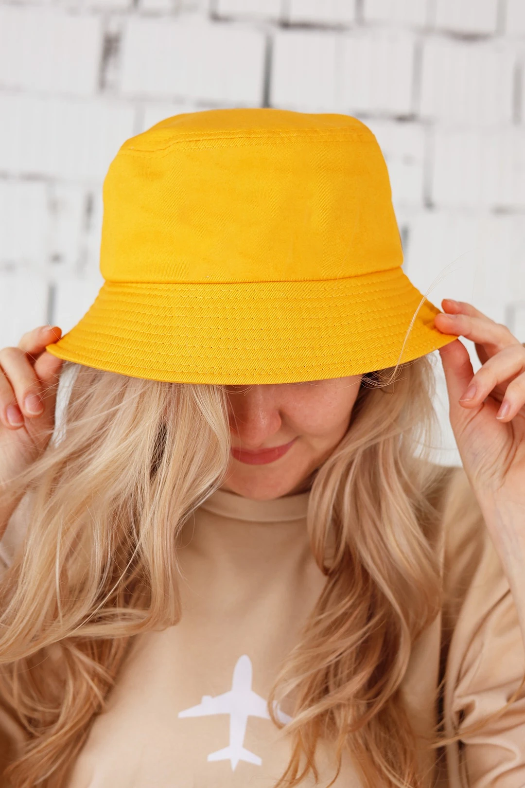 Панама Мадрид из греты с узкими полями, однотонная желтая