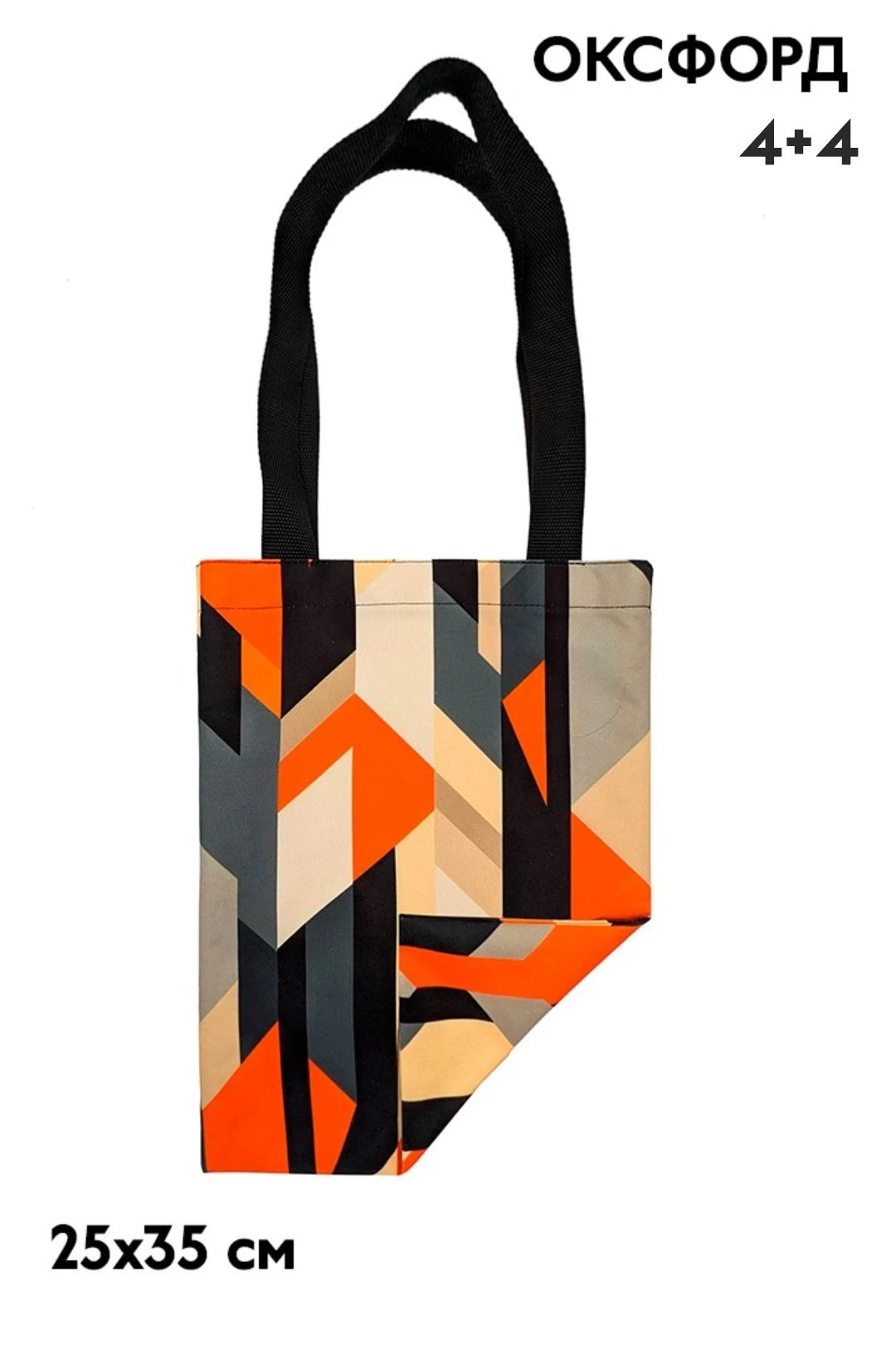Сублимация. Полноцветная печать осуществляется с двух сторон по всей поверхности сумки, ручки сумки выполнены из цветной стропы шириной 3 см без элементов дизайна.