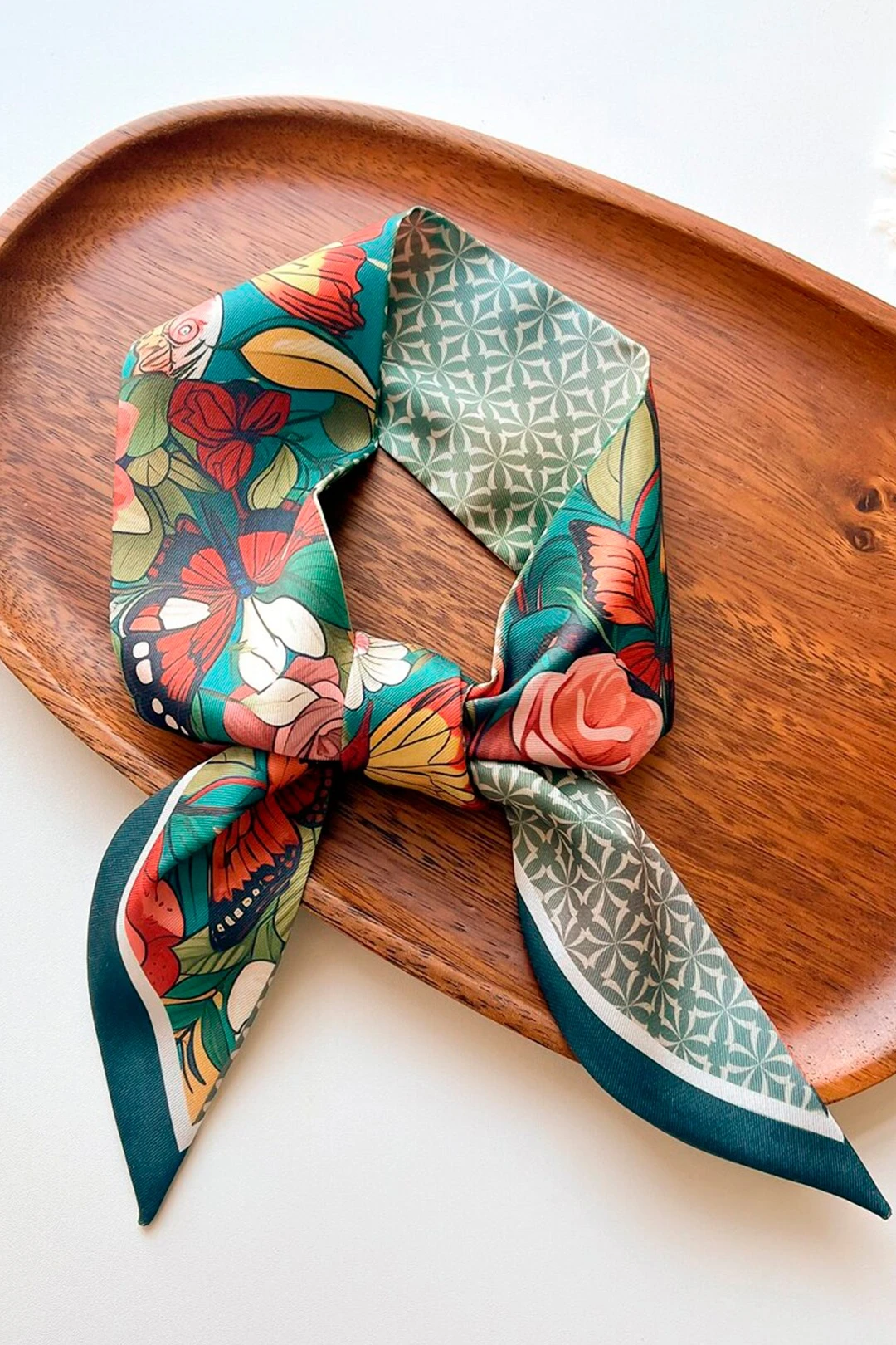 Шарф-платок Твилли двухслойный 7х90 см, с полной запечаткой "Butterfly with flowers"