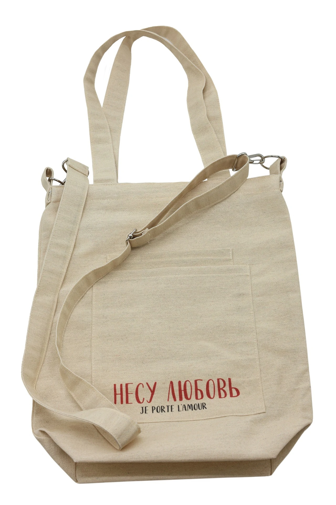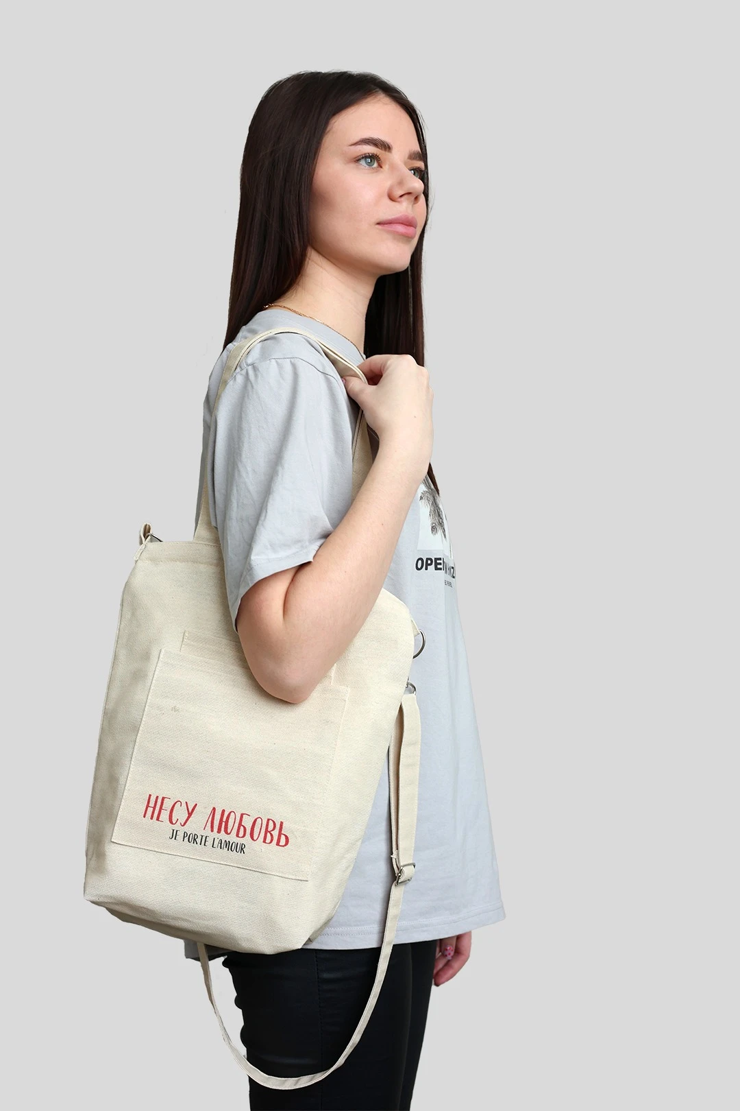 Печать с двух сторон: полноцветная печать осуществляется на хб материале с двух сторон по всей поверхности сумки, ручки сумки запечатываются фоновой заливкой без элементов дизайна.