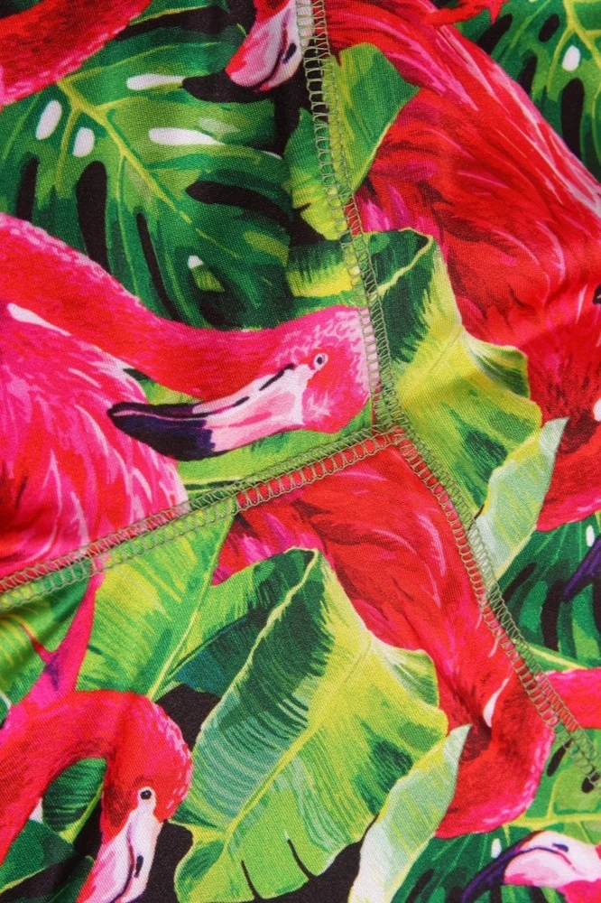 Легинсы женские с широким поясом с принтом "Flamingo"
