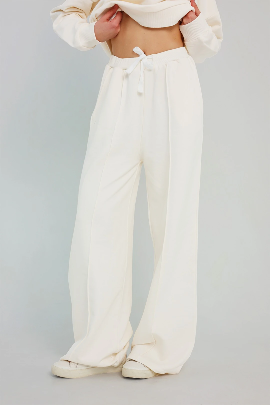 Модель: Брюки прямые с поясом из кашкорсе. Пояс дополнительно регулируется шнуром. Брюки с карманами в боковом шве без молнии.