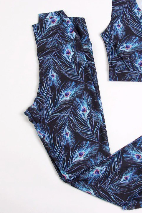 Легинсы женские с широким поясом с принтом "Peacock feathers"