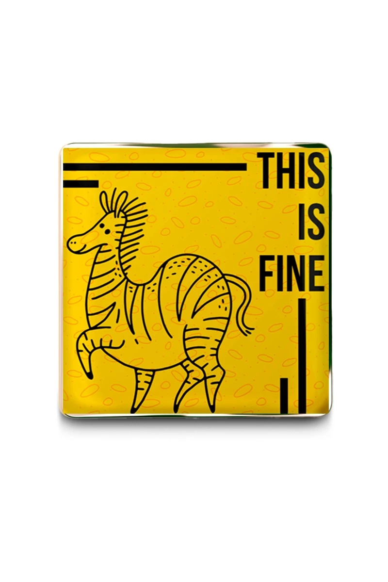 Значок заливной Квадрат 25х25 мм, с принтом "This is fine"