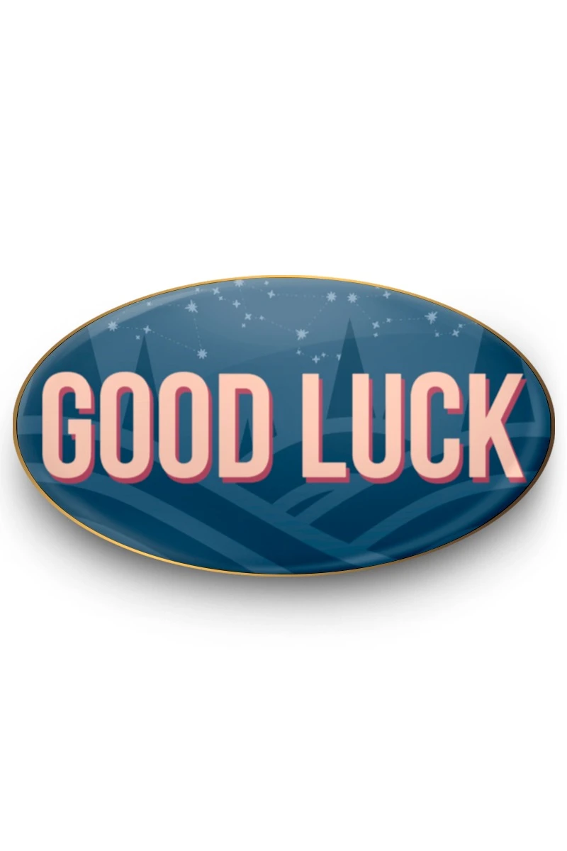 Значок заливной Овал 21х12 мм, с принтом "Good luck"