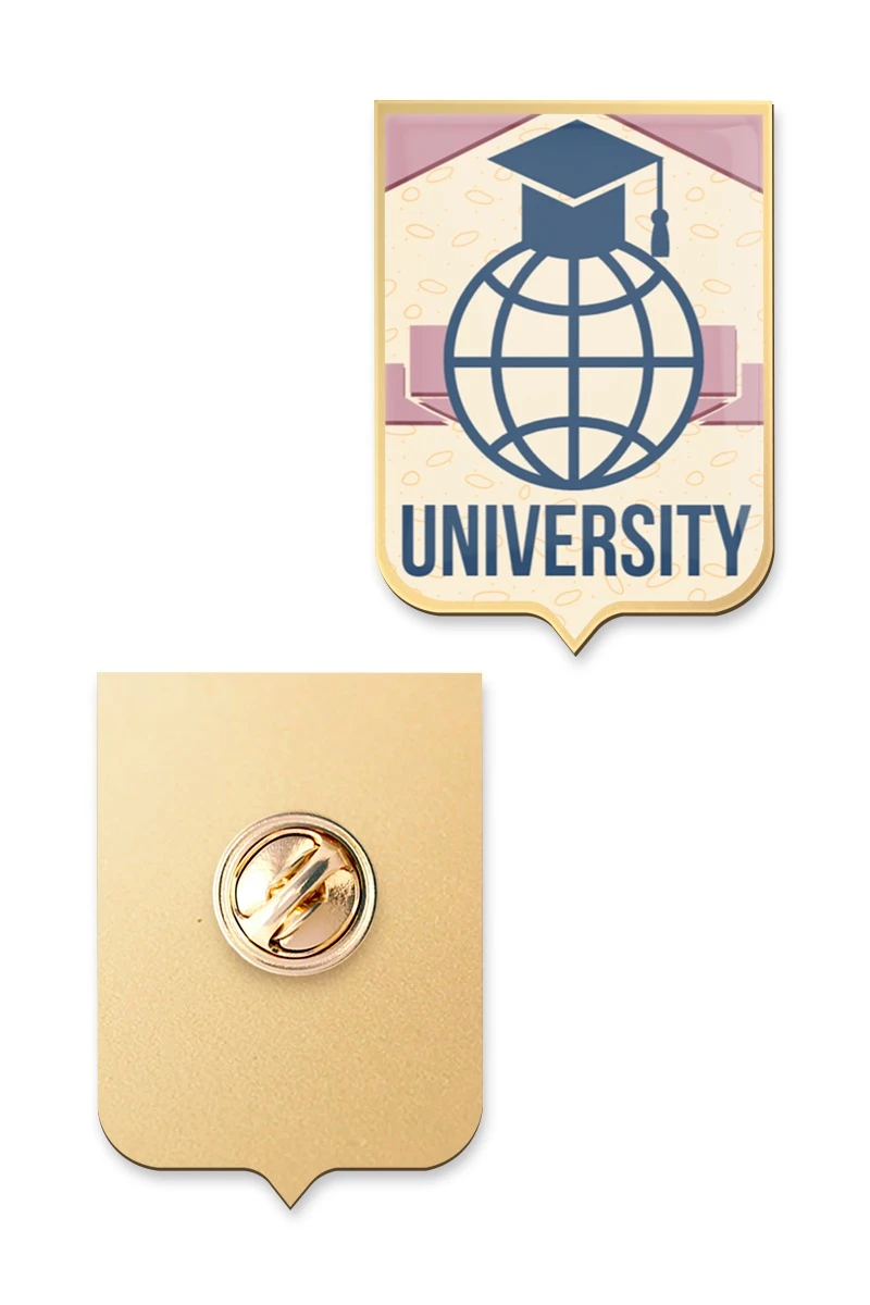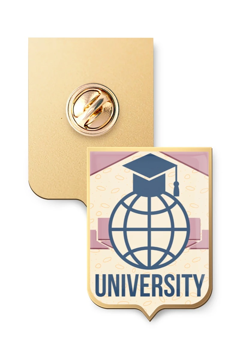 Значок заливной Герб 30х22 мм, с принтом "University"