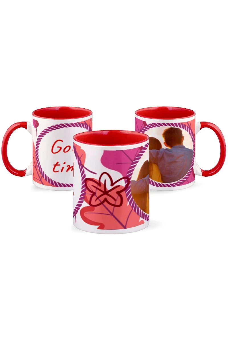 Кружка цветная внутри с цветной ручкой, с принтом "Good time"