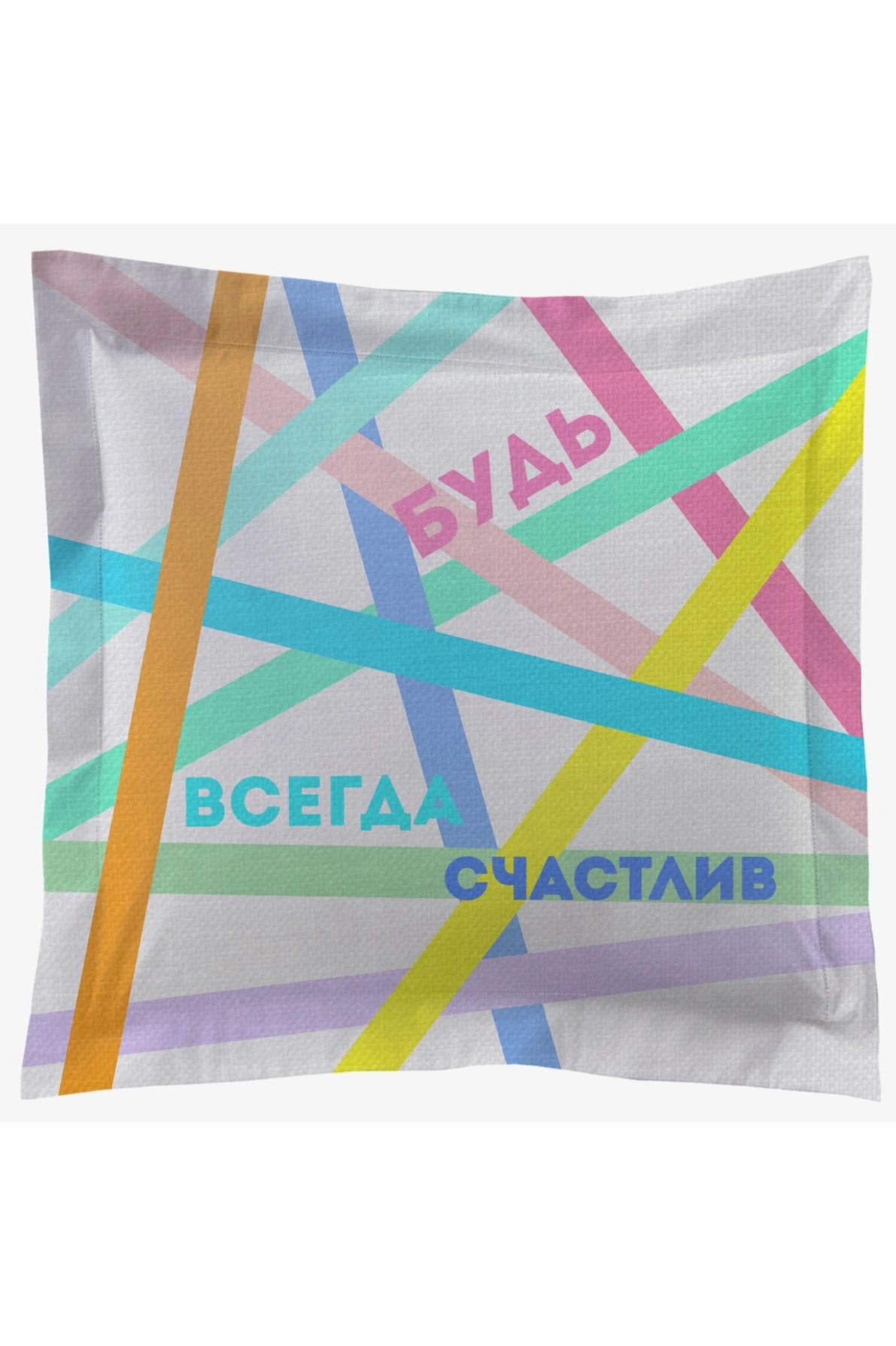 Подушка с бордюром 30х30 см, с принтом "Be always happy"