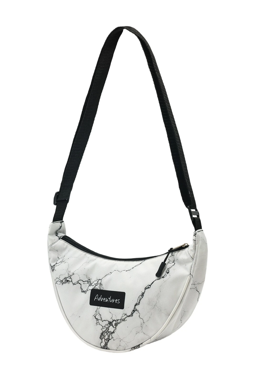 Модель: Сумка полукруглой формы, ее можно носить на плече или crossbody. Регулируемый ремень длиной от 65 см, максимальная длина 128 см. Сумка на молнии (черного или белого цвета) с подкладом и внутренним карманом 19х13 см для мелочей. Форма поддерживается кедер-кантом, он окантован в цвет изделия.