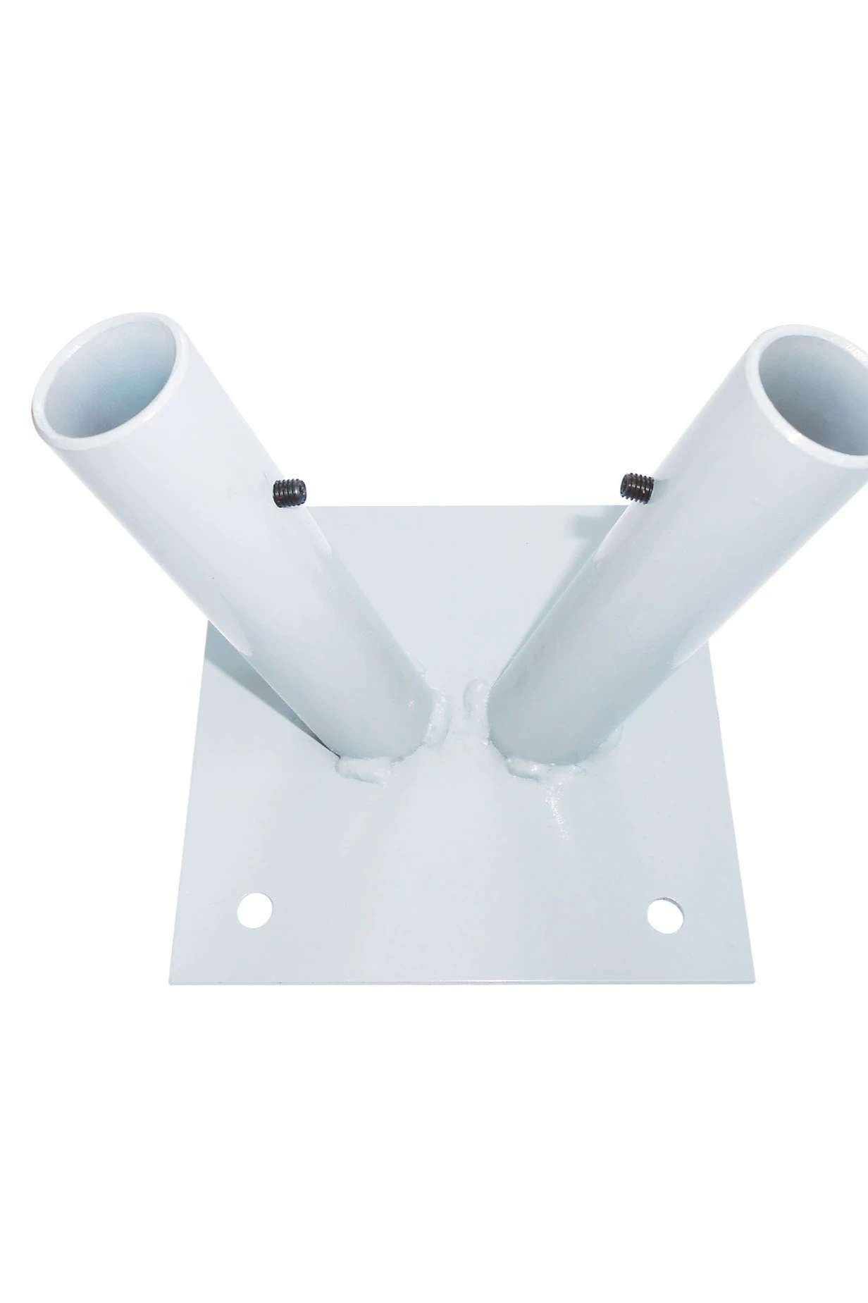 Форма, размер. Основание изготовлено из металла толщиной 3 мм, размер 15х15 см. Штоки изготовлены из металла толщиной 2,5 мм. Длина штока составляет 15 см. Наружный диаметр 3,2 см. Внутренний диаметр трубы 2,7 см.