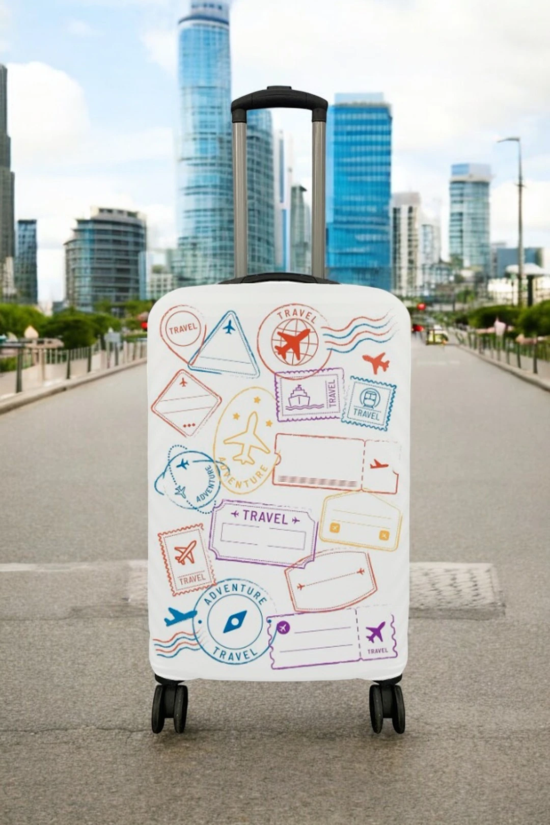 Чехол для чемодана – удобное решение для всех, кто путешествует семьей и в одиночку в любое время года. Он удобен и практичен, надежно защищает ваш багаж от механических повреждений, пыли, грязи и неблагоприятных погодных условий. Нанесенный на чехол яркий рисунок не даст вашему чемодану затеряться среди множества других сумок на конвейерной ленте в аэропорту. Благодаря эластичности ткани чехол легко надевается и надежно фиксируется. Компания "Инари" предлагает чехлы для чемоданов разного размера. Оформляйте заказ изделия с этим оригинальным принтом. Если Вы хотите нанести свой уникальный принт, переходите в базовый товар для создания вашего дизайна.