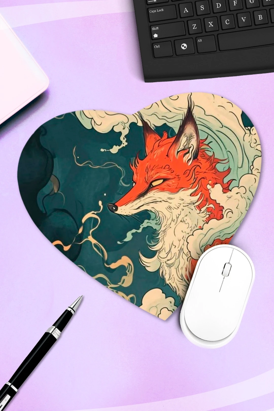 Коврик для мыши в форме сердца с принтом "Fox"