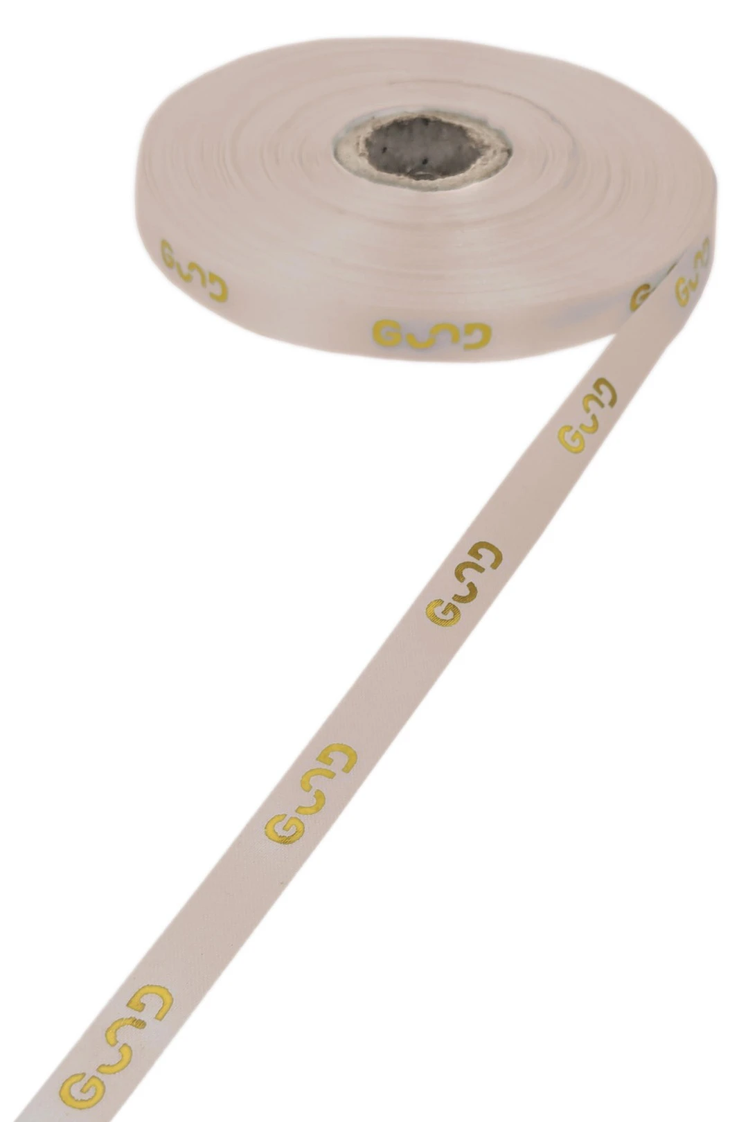 Лента сатин ширина 1 см бежевая, печать золотом с одной стороны