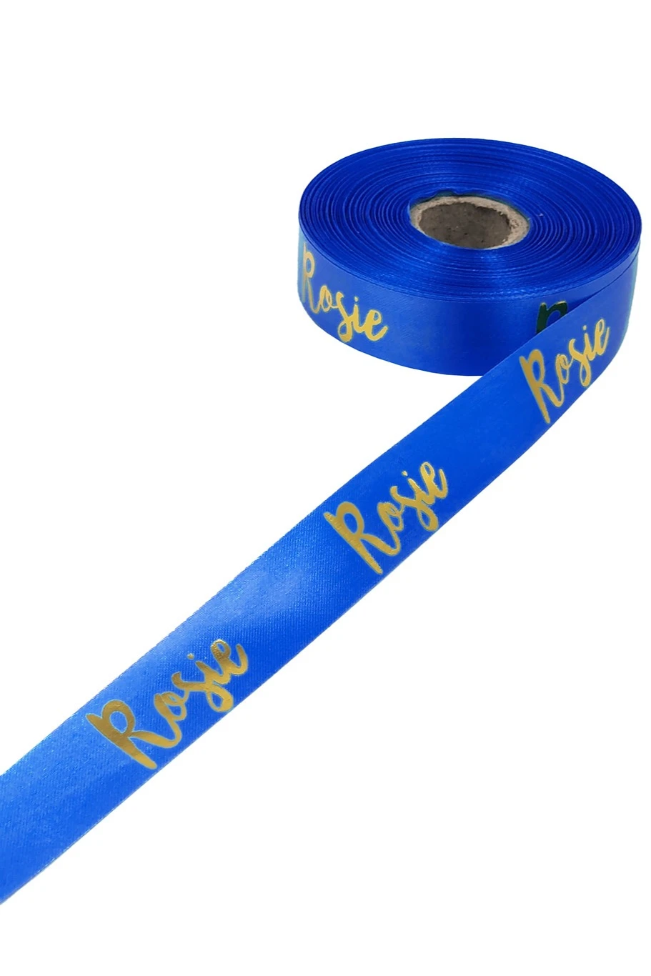 Лента сатин ширина 2 см синяя, печать золотом с одной стороны