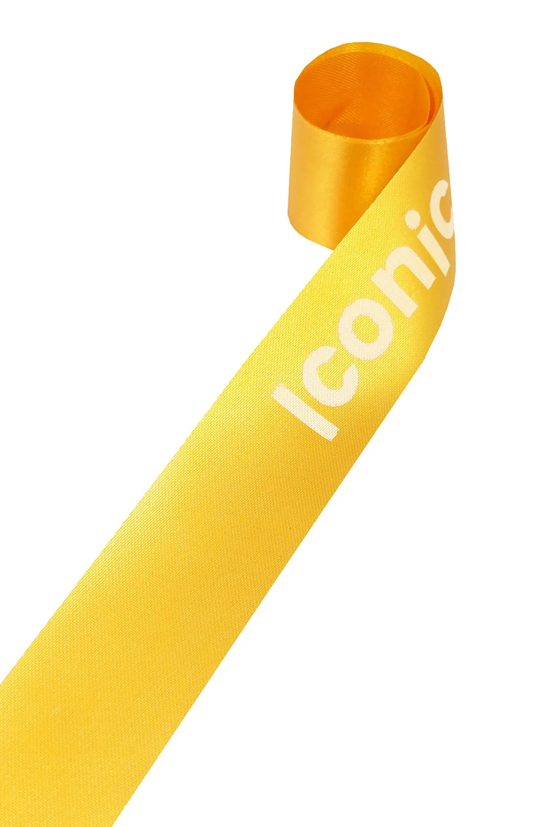 Лента сатин ширина 2,5 см желтая, печать белым с одной стороны