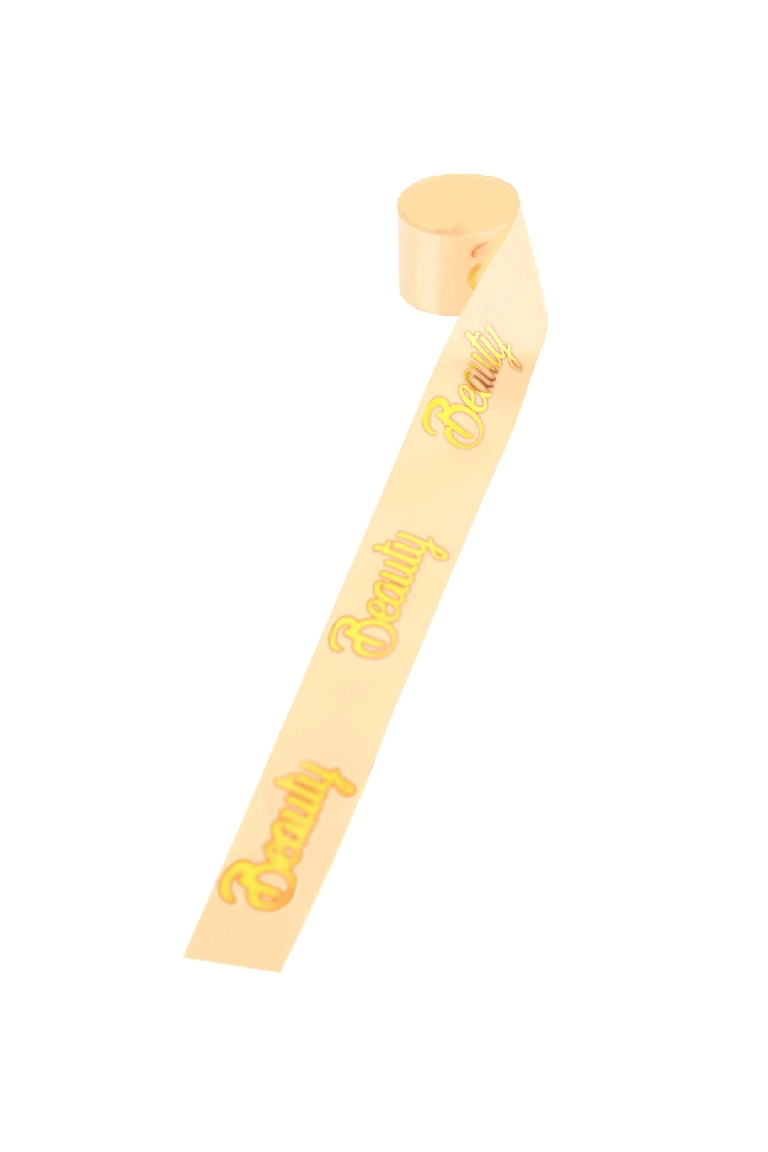 Лента сатин ширина 2,5 см кремовая, печать золотом с одной сторон