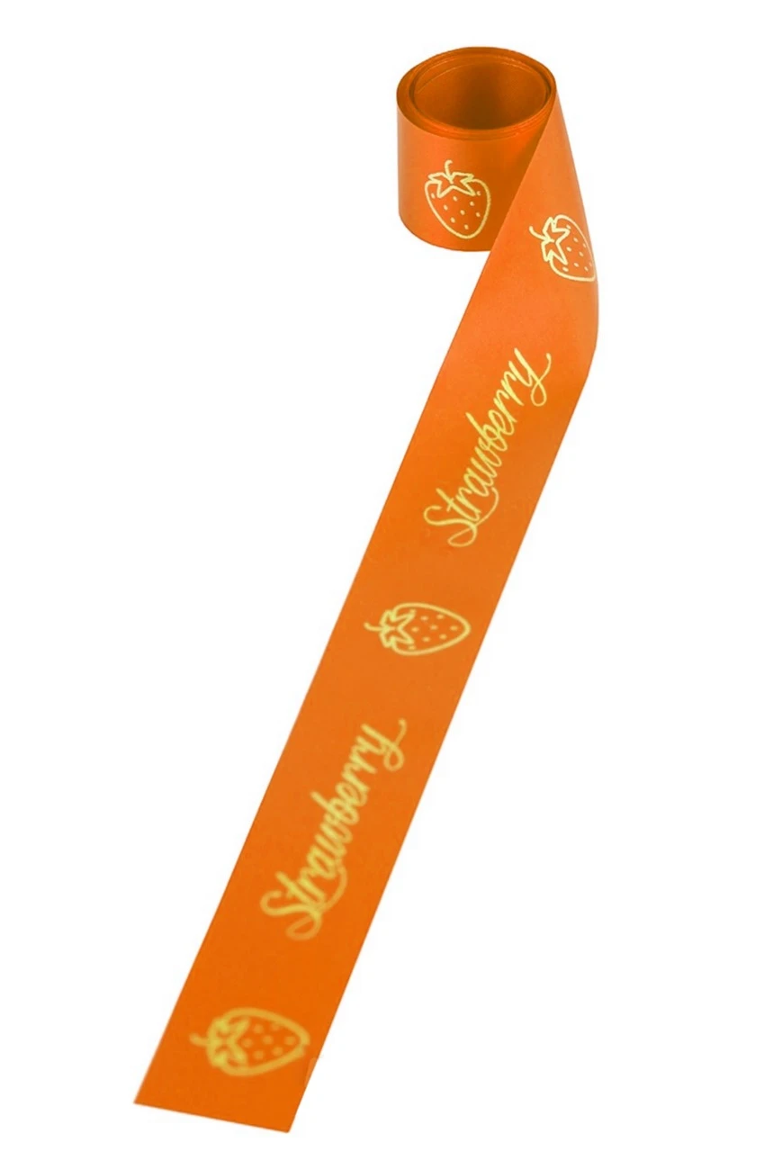 Лента сатин ширина 3 см оранжевая, печать золотом с одной стороны