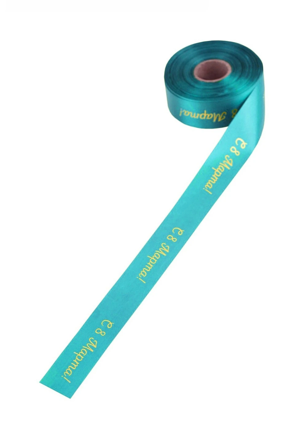 Лента сатин ширина 3 см голубая, печать золотом с одной стороны